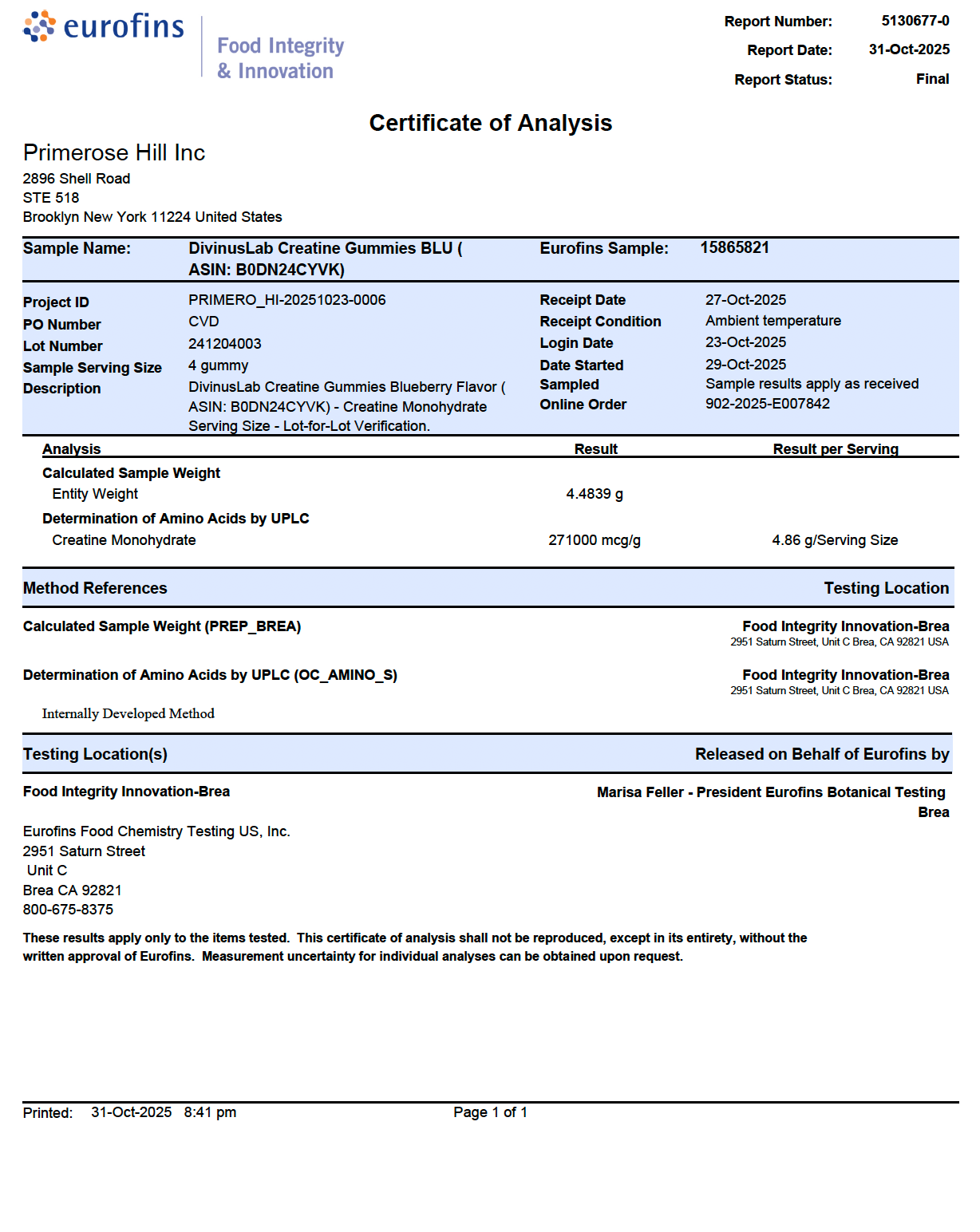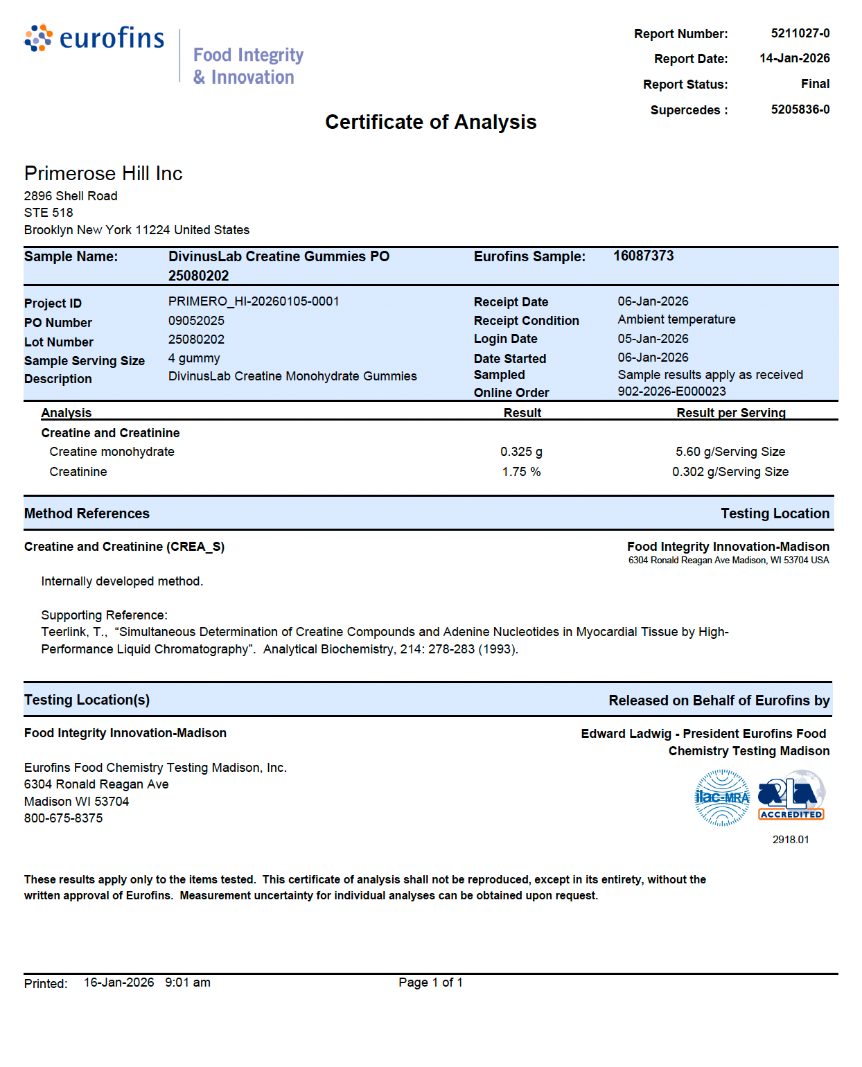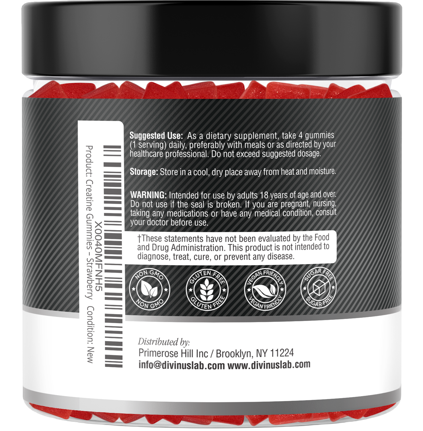 DivinusLab Creatine Gummies are vegan-friendly and contain no animal-derived ingredients.