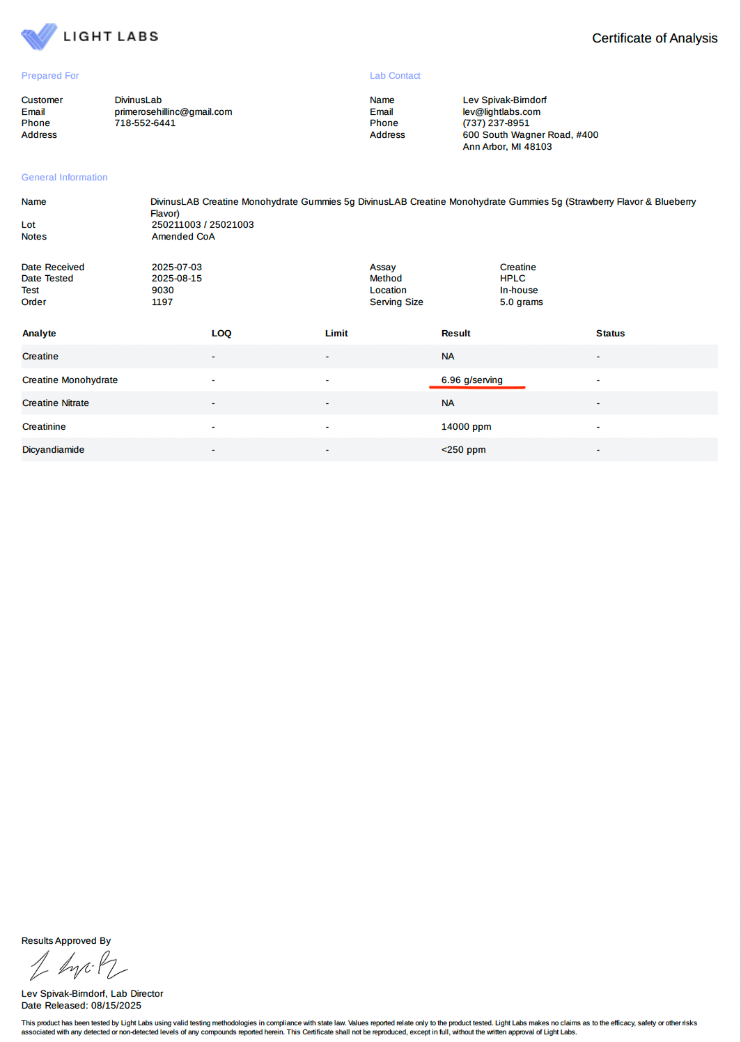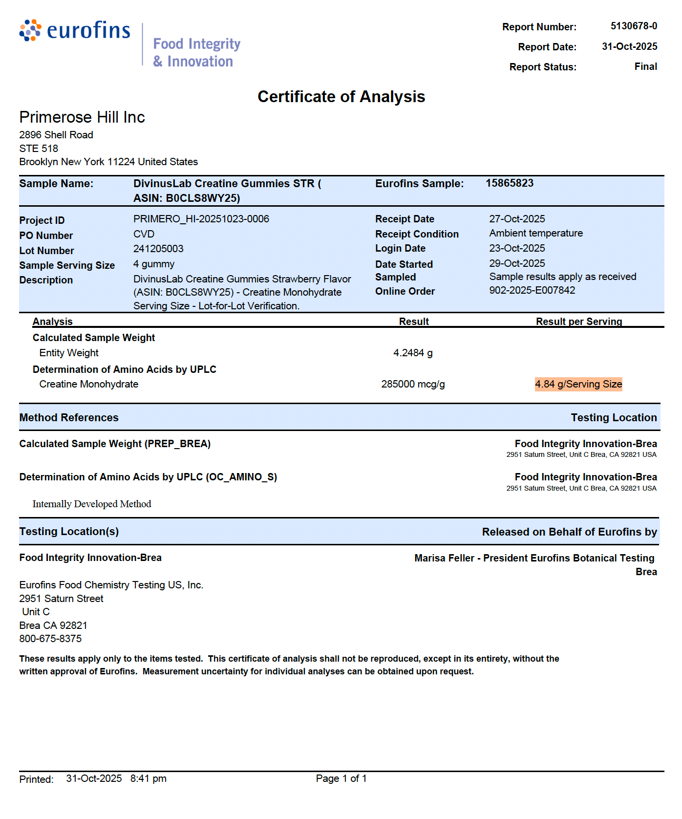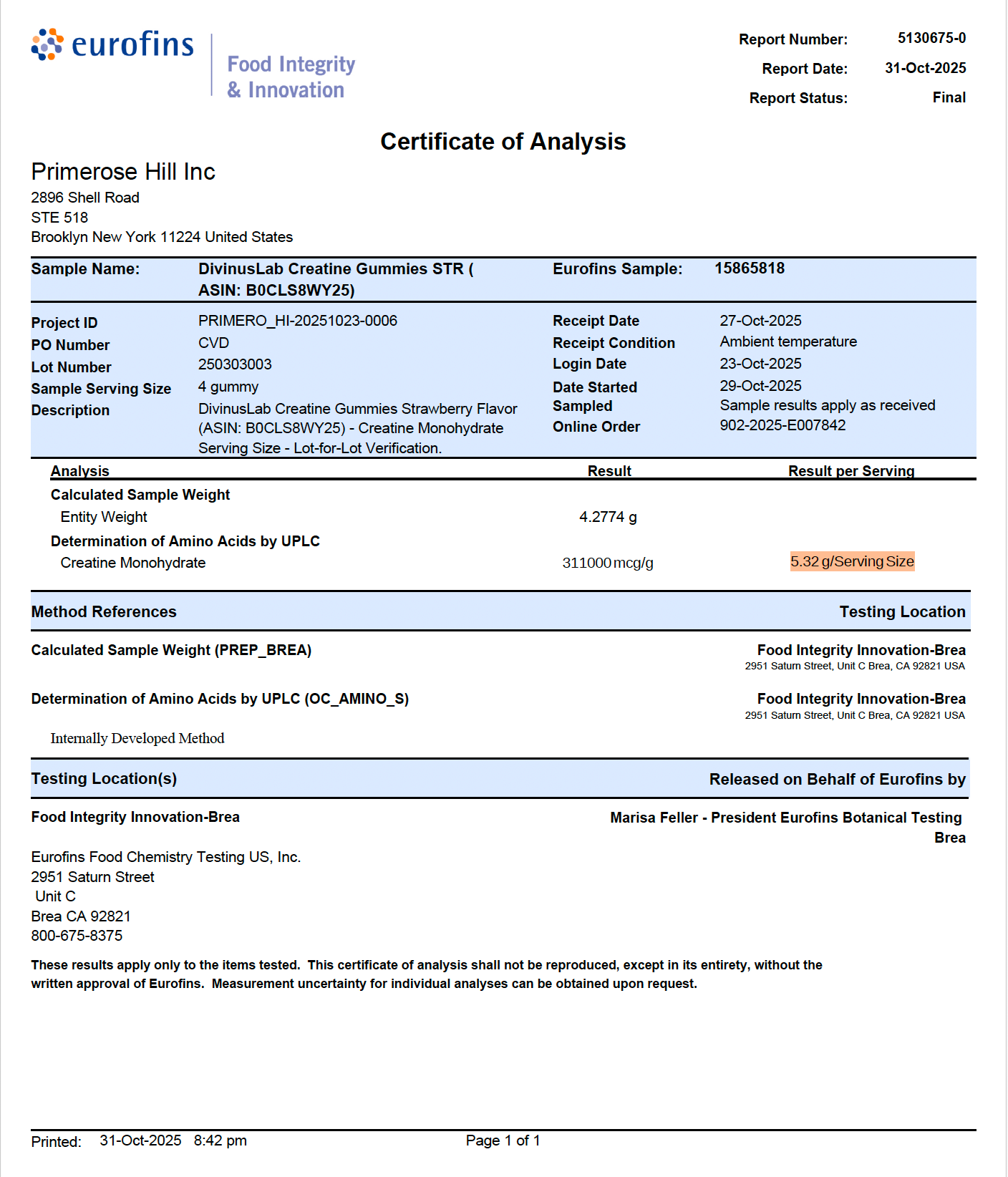 DivinusLab Creatine Gummies are vegan-friendly and contain no animal-derived ingredients.
